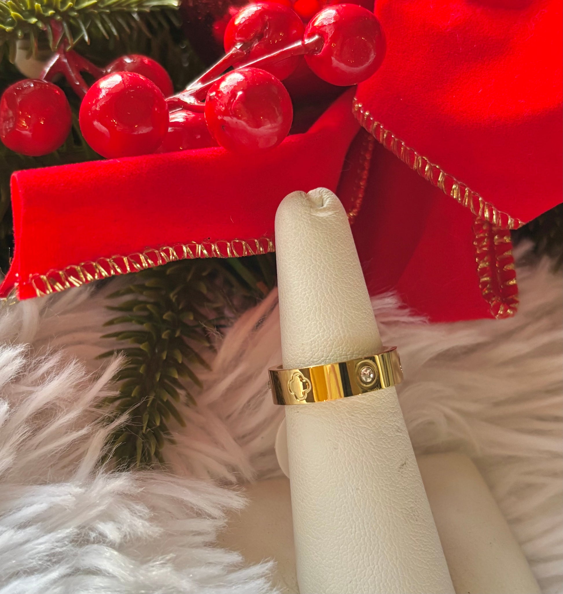 A Cartier inspired ring with clover & rhinestone detail