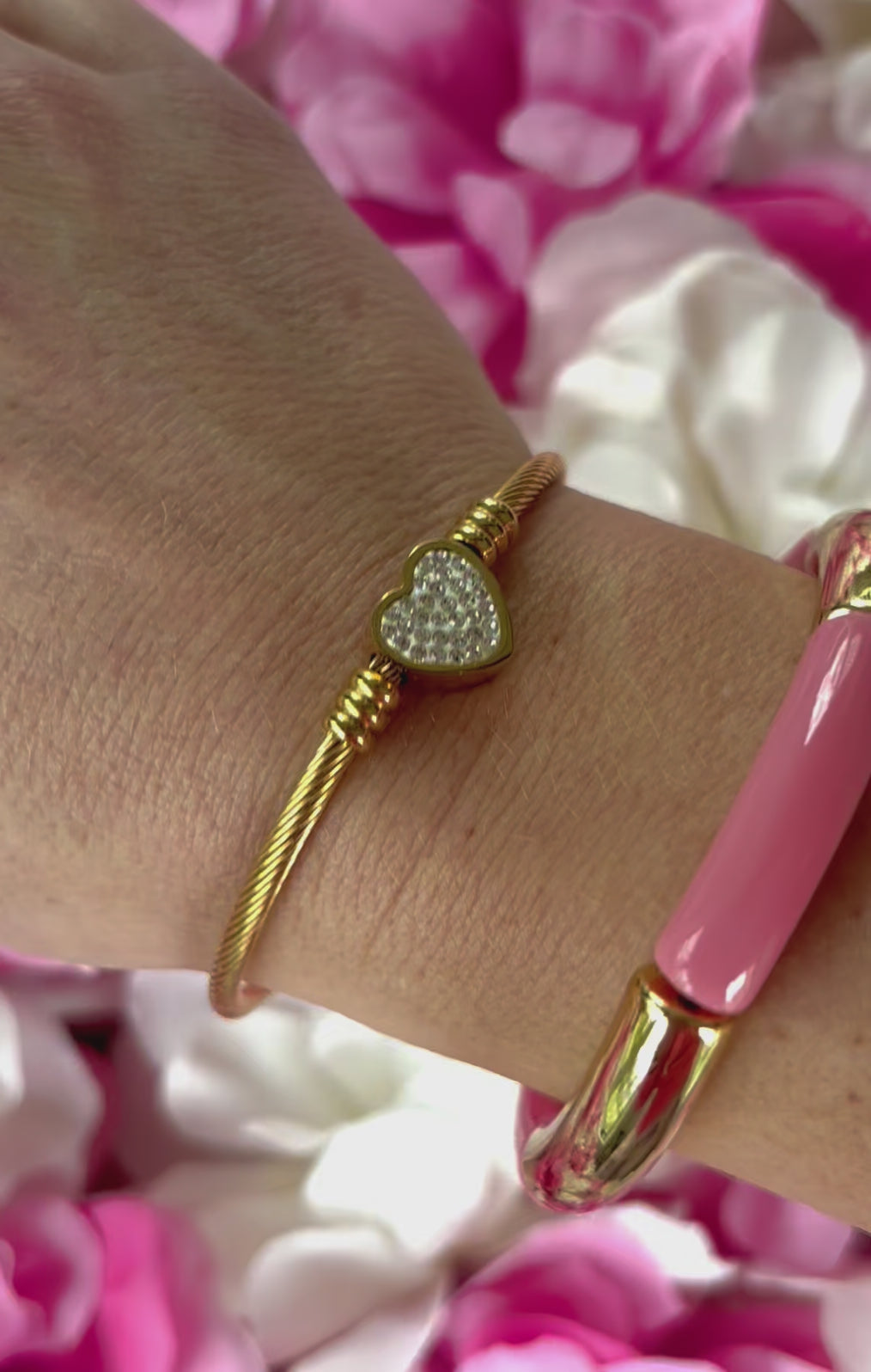 Delicate coil design with a dramatic pavé-set heart captures the excitement and energy of falling in love!