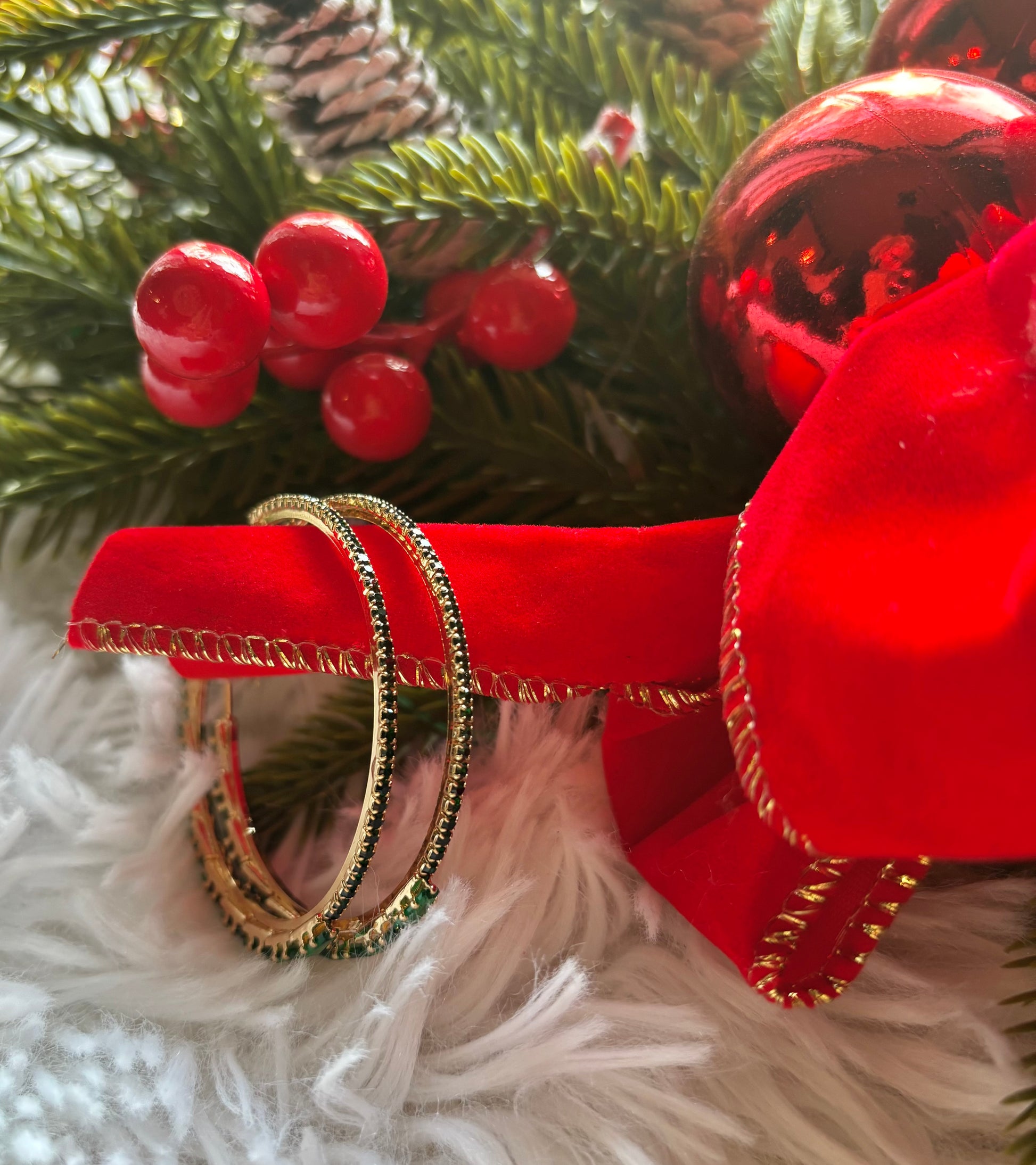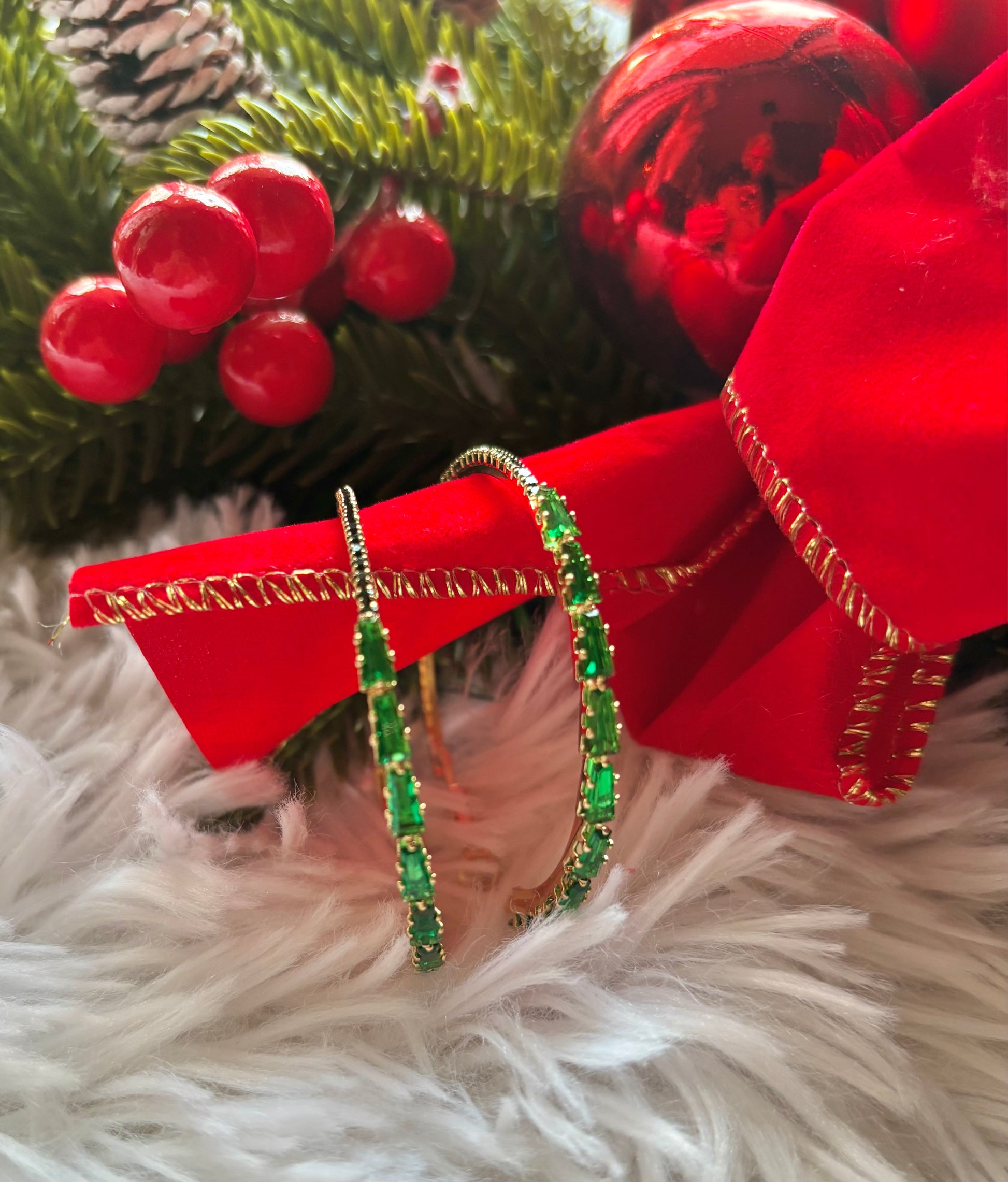 Gorgeous green rhinestones and attention to detail give these hoops a bold and sophisticated look.